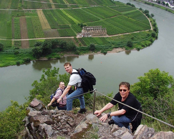 Hier befindet sich einer der Einstiegspunkte für den Calmont-Klettersteig, der seit 2001 durch diese extreme Steillage führt.